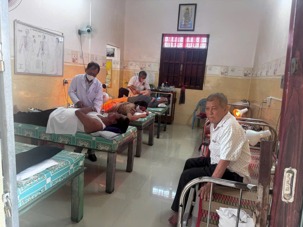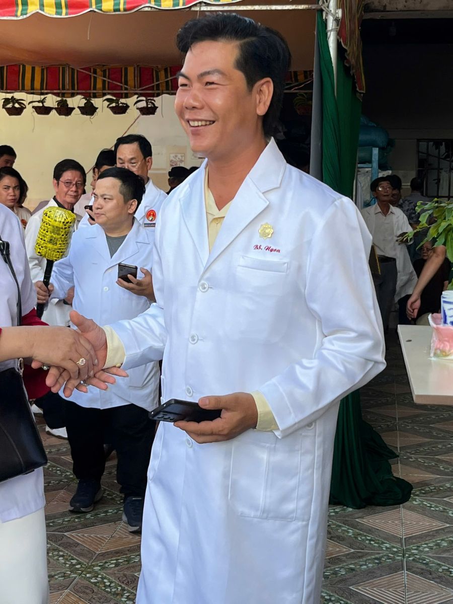 Đặc biệt, buổi khám có sự hiện diện của TTTB – BS. Trần Văn Ngon, Chủ tịch Hội Nam Y Sóc Trăng. Ông không chỉ quan sát từ xa, mà trực tiếp ngồi xuống bắt mạch, trò chuyện và lắng nghe nỗi lo của từng người bệnh.