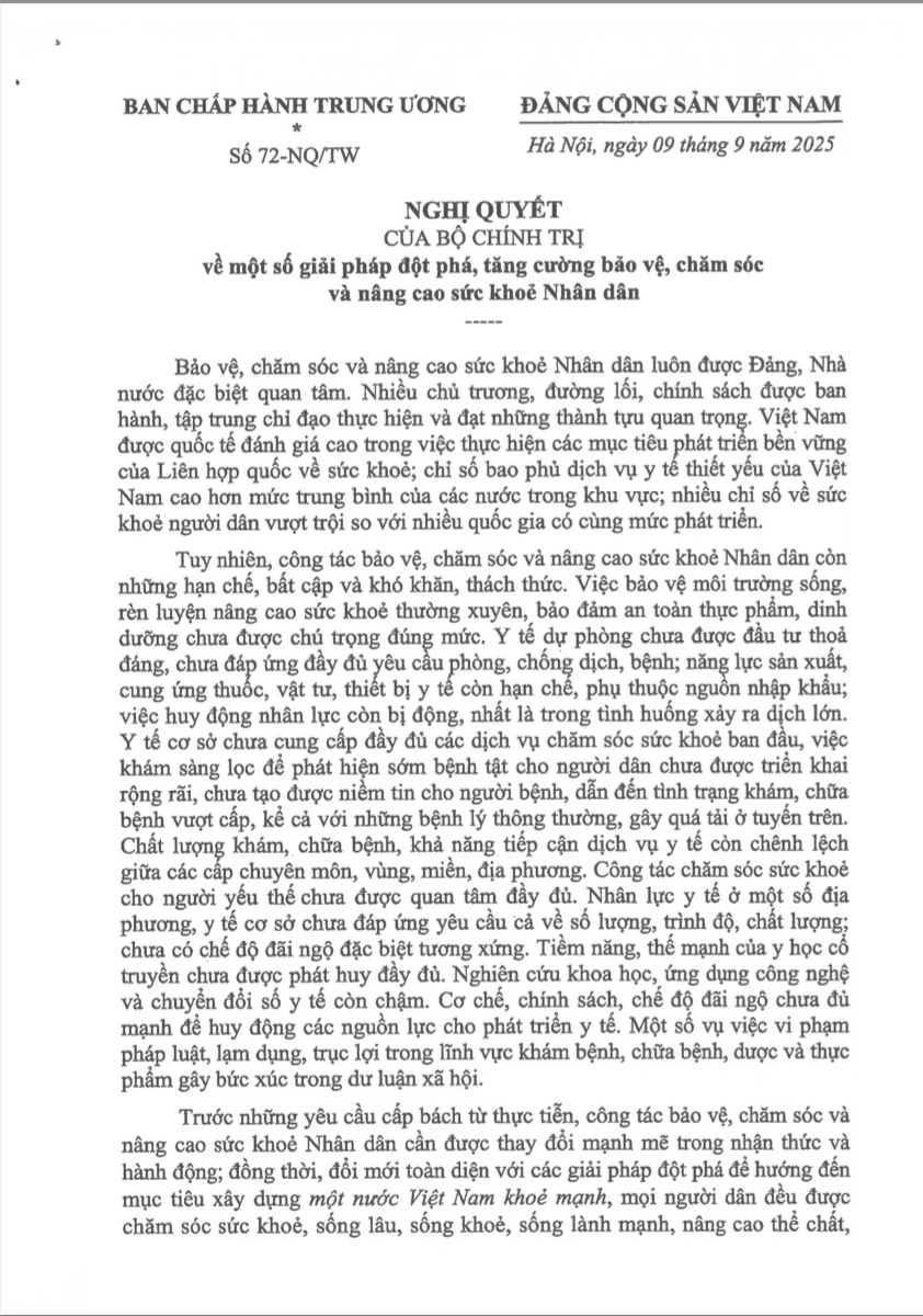 Ngày 09/9/2025, Bộ Chính trị ban hành Nghị quyết số 72-NQ/TW về một số giải pháp đột phá trong công tác bảo vệ, chăm sóc và nâng cao sức khỏe Nhân dân. Văn kiện khẳng định sức khỏe là vốn quý nhất của con người, là nền tảng cho hạnh phúc, sự phát triển bền vững của quốc gia. Bên cạnh hệ thống y tế hiện đại, y học cổ truyền – đặc biệt là Nam dược – được nhấn mạnh như một hướng đi quan trọng nhằm dự phòng, điều trị, chăm sóc sức khỏe toàn diện và bền vững cho cộng đồng.
